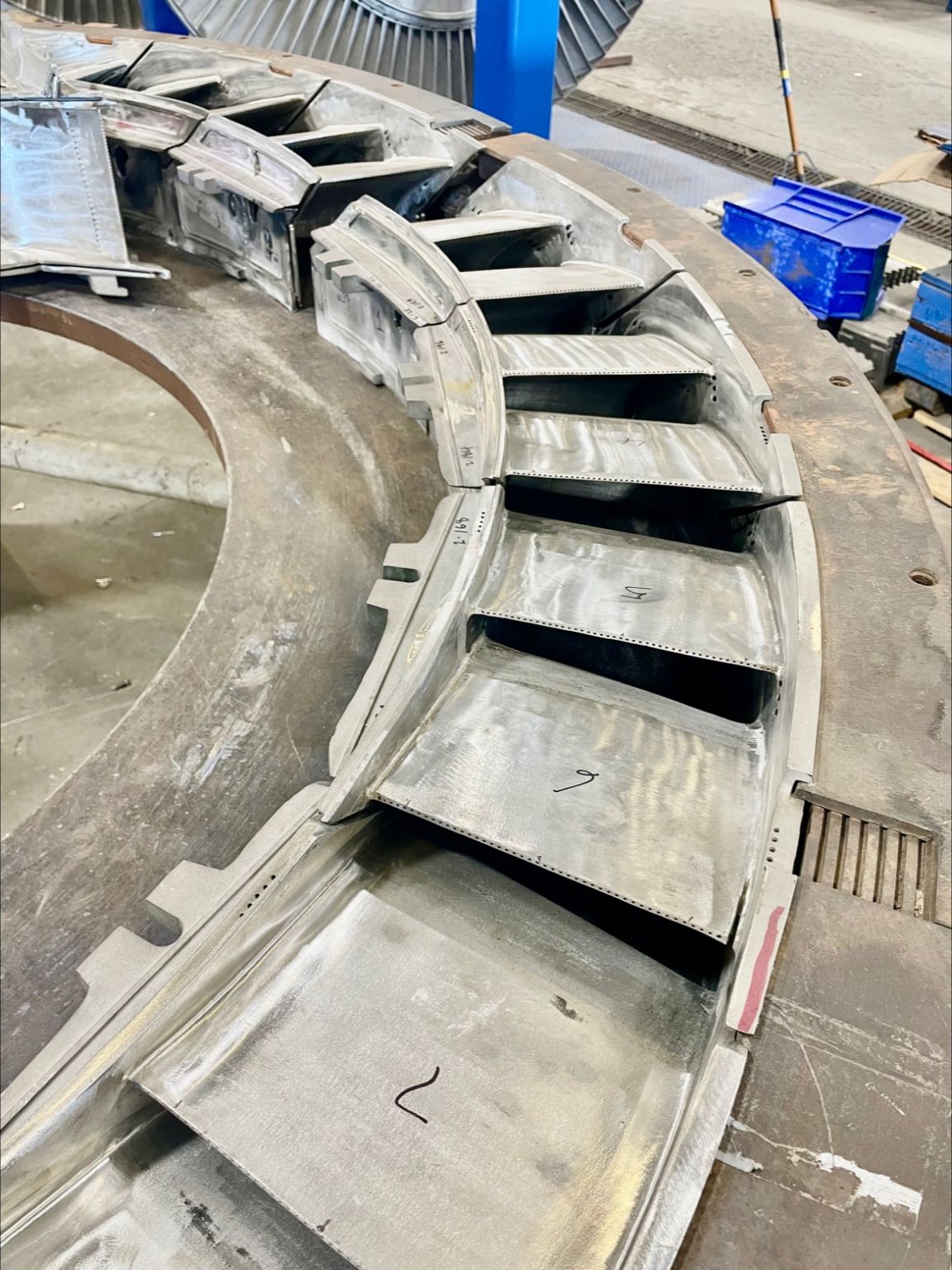 پره ثابت یا نازل توربین های گازی جهت جلوگیری از به وجود آمدن بی نظمی در مسیر هوای داغ در نظر گرفته است . تمامی این پره ها به شکلی طراحی شده اند که دارای بیشترین عمر بهره برداری و آسان ترین مسیر برای عبور هوای داغ و بهترین مسیر برای خنک کاری هستند. نازل های ردیف اول تحت تاثیر بیشترین درجه حرارت هستند اما تنش های مکانیکی وارد بر آن کمتر از پره های متحرک می باشد. برای ساخت این قطعات معمولا” از آلیاژهای پایه کبالت استفاده می شود که از نظر ترکیب و ساختارساده تر از آلیاژهای پایه نیکل می باشند. از جمله ویژگی های آنها می توان نقطه ذوب بالا ، مقاومت زیاد به اکسیداسیون خوردگی ، مقاومت بیشتر به شوک های حرارتی ، جوش پذیری بالا را نام برد.با توجه به این مطالب می توان گفت بازسازی این قطعات به مراتب ساده تر و ریسک پذیری تعمیر آن پایین تر از تعمیر پره های متحرک می باشد.